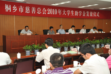 8月27日下昼,,,,桐乡市慈善总会2010年大学新生助学金发放仪式在市政府举行,,,,佰利乐股份也响应招呼起劲捐钱助学。。。。图为董事长沈耿亮代表佰利乐股份公司出席了助学金发放仪式。。。。