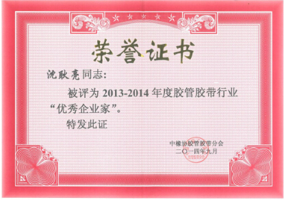 别的,,,,,为勉励胶管胶带行业的宽大企业谋划治理者在认真贯彻落实科学生长观,,,,,推动工业转型升级等方面的起劲孝顺,,,,,同时为表扬先进、树立模范、充分验展优异企业家和科技事情者在行业生长中的带动树模作用,,,,,落实工信部对协会事情的要求,,,,,凭证中国橡胶工业协会胶管胶带分会制订的“胶管胶带行业优异企业家评定步伐”和“胶管胶带行业优异科技事情者评定步伐”,,,,,我公司董事长沈耿亮被评为“2013-2014年度胶管胶带行业优异企业家”,,,,,总司理沈会民被评为“2013-2014年度胶管胶带行业优异科技事情者”。。。。。